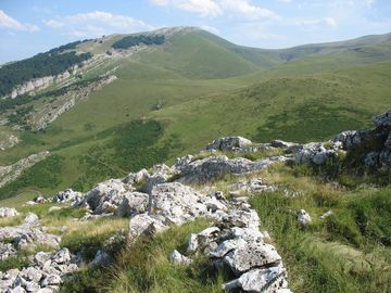 Remonter vers le haut en contournant les rochers et en empruntant les passages herbeux.