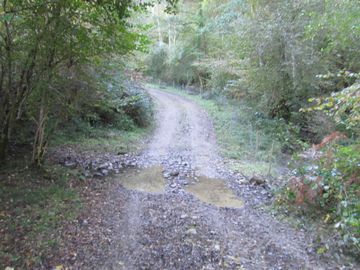 En fait ce sera la partie la plus pénible de la randonnée car ce tronçon est extrêmement boueux . Il faudra jongler avec les cotés droit et gauche pour éviter les flaques de boue, et même passer par les prés à coté lorsqu'on ne peut passer sur le chemin.