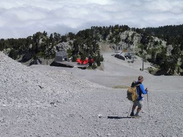 Cette piste est un immense pierrier instable sous nos pas. Il faut rester prudent.