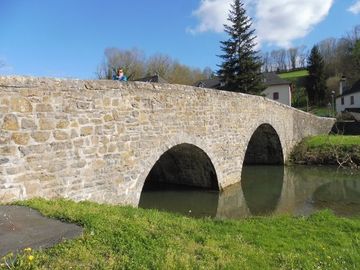 Notre randonnée débutera par traverser le pont de l'église, passer devant celle-ci, et la visiter si elle est ouverte. Puis, on sort sur le côté et on remonte un peu la route au dessus.